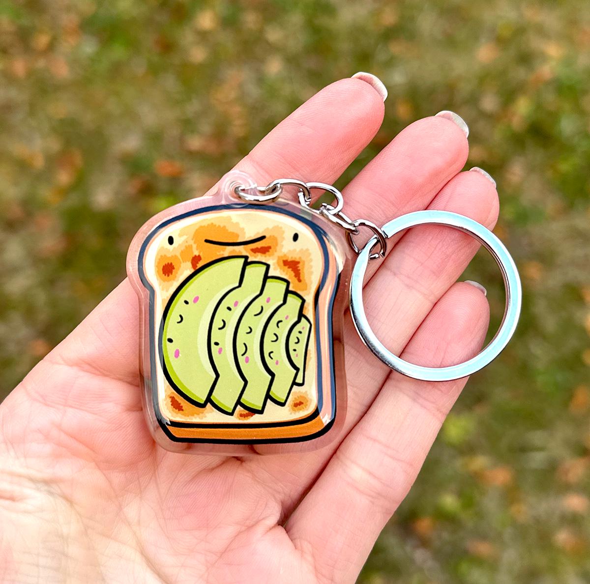 This keychain features my original vector illustration of a super cute little piece of avocado toast!